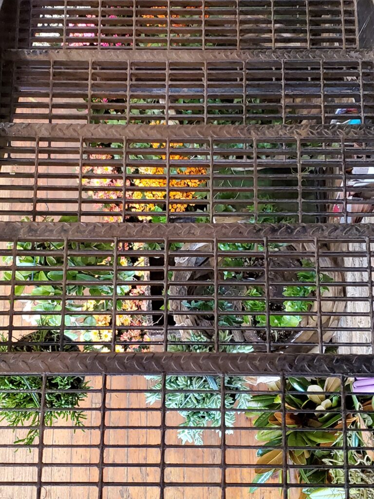What a hackneyed title for a cool photo like this. Some friends and I are wandering around on a Saturday afternoon, checking out little shops and boutiques, and I don’t even remember what kind of stuff no one really needed was for sale here; I just remember looking down through the stairway and seeing what wasn’t readily accessible when we were down there, a nook with all of these plants. I thought it might be their break room. The grate of the stairway gave it a whole lot of contrast and texture, and I really love this photo.