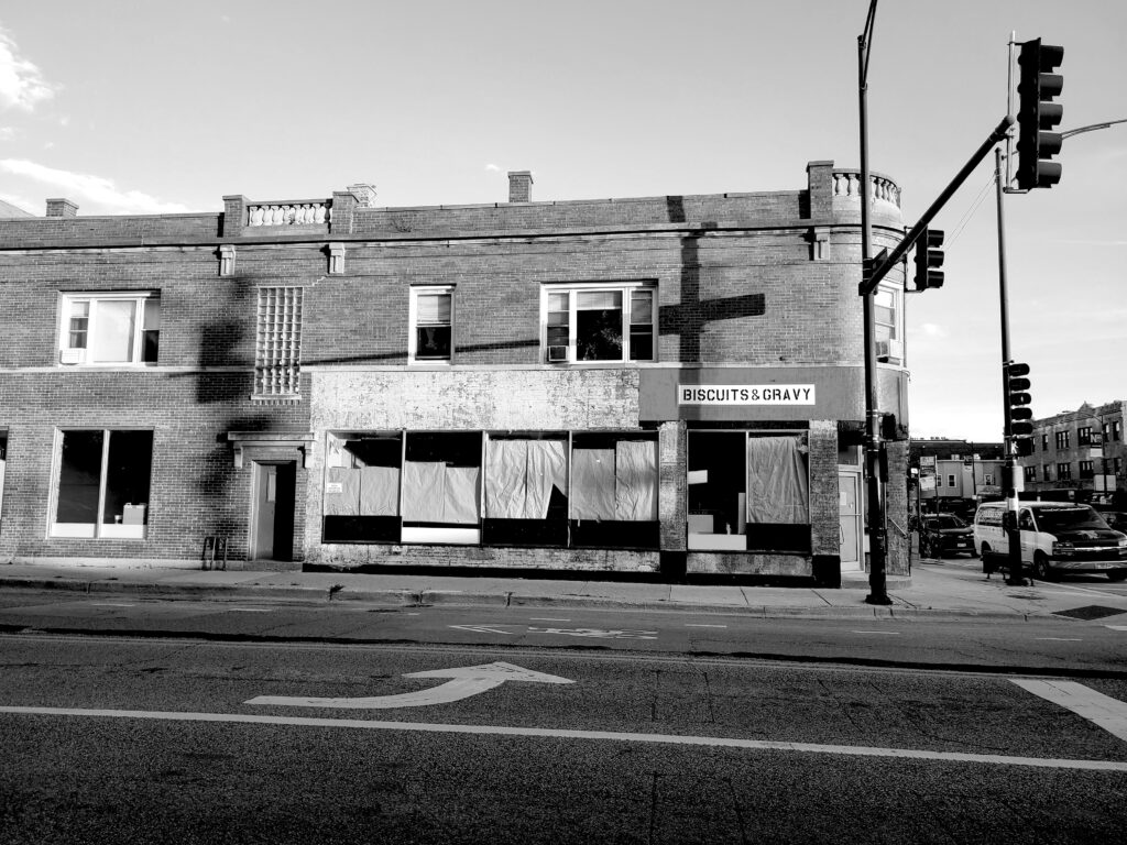 Look at all that beautiful texture! The bricks, the panels where signs used to be, the remaining sign, the shadows, the glass bricks, and so on. Converting this to black and white was a decision that worked really well. This diner wasn’t quite in my neighborhood, but it was one of my favorite breakfast spots while it was open, and I had a New Year’s Day tradition of heading there for a plate of biscuits & gravy with eggs over easy on top. One of the best breakfasts Chicago ever had to offer, I’ll say. Another diner is open there now, and it’s good, it’s good. I sure miss that original diner, though.