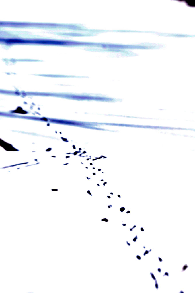 For a little while, I had fun experimenting with the Lensbaby line of special-effect optics, mostly a mock tilt-shift system where you could move the lens around while it was plugged into the camera so that you could play with depth of field. It was hard to expose correctly with these lenses, and I didn’t really miss them when they were lost during a move, but there were a few photos that came out really well, and this photo of tracks in the snow covering a frozen pond was one of my favorites.