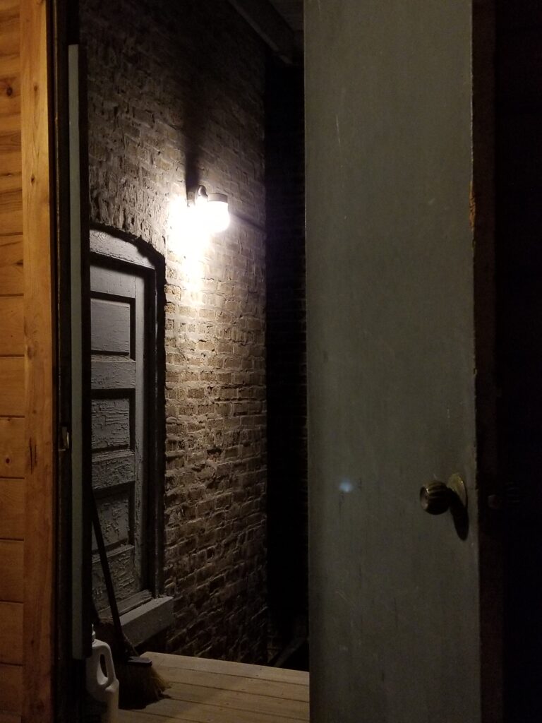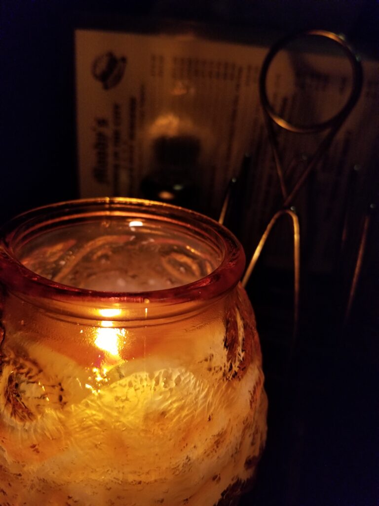 I had a long and unhappy day at work that resulted in my leaving for home quite late. I realized that, even if I were leaving on time, I wasn’t in the mood to cook, and as late as it was, a little kindness at a nearby bar would do a lot to improve my mood. Spotting this composition and tweaking it over a number of photos helped me forget the day, the very rare burger and cold beer were also comforting, and I left feeling better than when I’d arrived, with a good mood lighting photo.